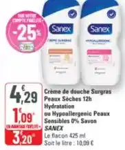 En plus de l'offre Sanex - crème de douche surgars peaux seches 12h hydration, G20 propose une large gamme de produits. Consultez le Catalogue G20 hebdomadaire pour découvrir les meilleures offres et promotions. En plus de Sanex - crème de douche surgars peaux seches 12h hydration, il y a aussi : SANEX Gel douche Essentiel peaux sèches, Crème de douche surgras peaux sèches 12h hydratation ou hypoallergenic peaux sensibles 0% savon sanex & CRÈME CORPS PEAUX SÈCHES ET SENSIBLES.