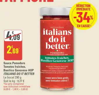 Sauce pomodoro tomates fraîches basilico genovese aop italians do it better : offres et promos G20 à découvrir