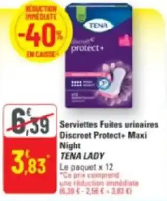 Actuellement en offre chez G20 : Serviettes fuites urinaires discreet protect+ maxi night tena lady ✅ Valable du 14-01 au 25-01.