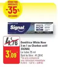 Actuellement en offre chez G20 : Signal - dentifrice white now 3 en 1 au charbon actif ✅ Valable du 31-12 au 11-01.