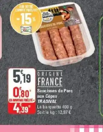 Actuellement en offre chez G20 : TRADIVAL Saucisses de Porc aux Cepes ✅ Valable du 11-03 au 22-03.