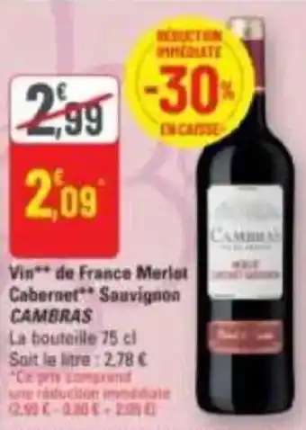 Vin de france merlot cabernet sauvignon cambras 75 cl