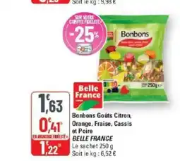 BELLE FRANCE Bonbons Gouts Citron, Orange, Fraise, Cassis et Poire