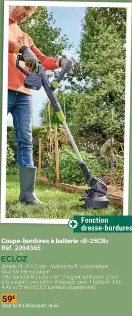 En plus de l'offre Ecloz - conction deless desk-bordures, Gamm vert propose une large gamme de produits. Consultez le Catalogue Gamm vert hebdomadaire pour découvrir les meilleures offres et promotions. En plus de Ecloz - conction deless desk-bordures, il y a aussi : Ecloz dresse-bordures, Ecloz coupe-bordures à batterie e-25cb & Coupe-bordures 350w.