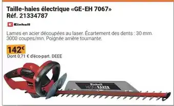 L'offre est disponible dans plusieurs magasins, vérifiez tous les produits pour obtenir le Einhell - taille-haies électrique le moins cher. Si vous souhaitez savoir si l'article est en vente avec une plus grosse remise dans un autre magasin, consultez la catégorie 'Jardineries et Animaleries'. Ces offres pourraient aussi vous intéresser : Taille-haies électrique rht6160rs, Taille-haies électrique ge-eh 7067 & Taille-haies 36v.
