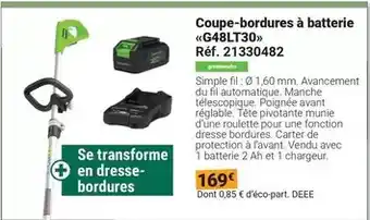 Offre Greenworks - coupe-bordures à batterie g48lt30 chez Gamm vert