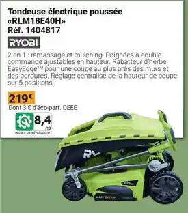 Offre Ryobi - tondeuse électrique poussée rlm18e40h chez Gamm vert