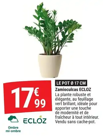 En plus de l'offre Zamioculcas ecloz, Gamm vert propose une large gamme de produits. Consultez le Catalogue Gamm vert hebdomadaire pour découvrir les meilleures offres et promotions. En plus de Zamioculcas ecloz, il y a aussi : Ecloz zamioculcas ecloz, Zamioculcas & GARDENLINE Zamioculcas.