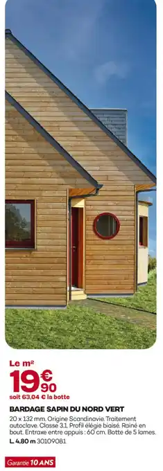 Actuellement en offre chez Gedimat : Bardage sapin du nord vert ✅ Valable du 4-03 au 21-03.