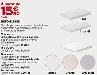 Actuellement en offre chez Gedimat : Béton lisse chaperons ✅ Valable du 4-03 au 21-03.