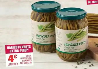 L'offre est disponible dans plusieurs magasins, vérifiez tous les produits pour obtenir le Haricots verts extra-fins le moins cher. Si vous souhaitez savoir si l'article est en vente avec une plus grosse remise dans un autre magasin, consultez la catégorie 'Supermarché'. Ces offres pourraient aussi vous intéresser : 1/2 Haricots verts extra-fins, Haricots verts extra-fins coupés & Haricots verts extra-fins CARREFOUR EXTRA.