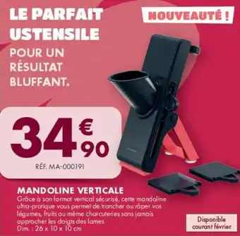 L'offre est disponible dans plusieurs magasins, vérifiez tous les produits pour obtenir le Mandoline verticale le moins cher. Si vous souhaitez savoir si l'article est en vente avec une plus grosse remise dans un autre magasin, consultez la catégorie 'Meubles & Décoration'. Ces offres pourraient aussi vous intéresser : Mandoline pro, Bordure verticale & Bordure verticale.