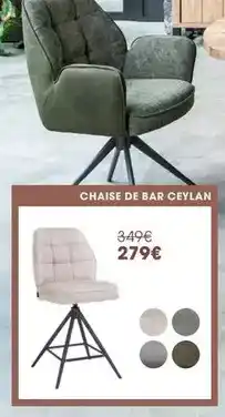 En plus de l'offre Chaise de bar ceylan, H&H propose une large gamme de produits. Consultez le Catalogue H&H hebdomadaire pour découvrir les meilleures offres et promotions. En plus de Chaise de bar ceylan, il y a aussi : Chaise ceylan, Chaise de bar & Bar.