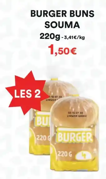L'offre est disponible dans plusieurs magasins, vérifiez tous les produits pour obtenir le Burger buns souma le moins cher. Si vous souhaitez savoir si l'article est en vente avec une plus grosse remise dans un autre magasin, consultez la catégorie 'Supermarché'. Ces offres pourraient aussi vous intéresser : 4 Buns à garnir, Pain au lait souma & Fish burger.