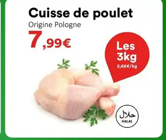 L'offre est disponible dans plusieurs magasins, vérifiez tous les produits pour obtenir le Cuisse de poulet le moins cher. Si vous souhaitez savoir si l'article est en vente avec une plus grosse remise dans un autre magasin, consultez la catégorie 'Supermarché'. Ces offres pourraient aussi vous intéresser : Haut de cuisse de poulet, Cuisse de poulet jaune label rouge ain & Le gaulois - haut de cuisse de poulet.