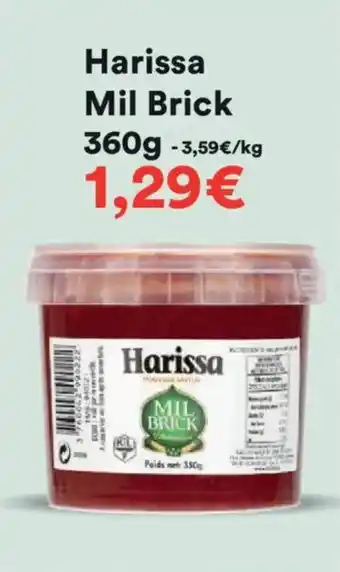 L'offre est disponible dans plusieurs magasins, vérifiez tous les produits pour obtenir le Harissa mil brick le moins cher. Si vous souhaitez savoir si l'article est en vente avec une plus grosse remise dans un autre magasin, consultez la catégorie 'Supermarché'. Ces offres pourraient aussi vous intéresser : Mil brick 50 feuilles de brick, Mil brick feuilles de brick l'authentique & MIL BRICK Feuilles de Brick L'Authentique.