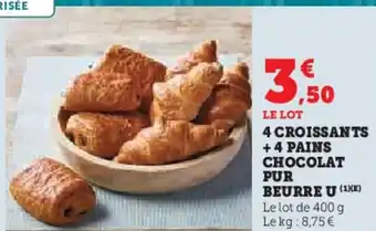 4 croissants +4 pains chocolat pur beurre u 400 g