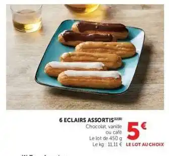 En plus de l'offre 6 Éclairs Assortis, Hyper U propose une large gamme de produits. Consultez le Catalogue Hyper U hebdomadaire pour découvrir les meilleures offres et promotions. En plus de 6 Éclairs Assortis, il y a aussi : 6 eclairs assortis, 2 ÉCLAIRS & 4 Éclairs au café.