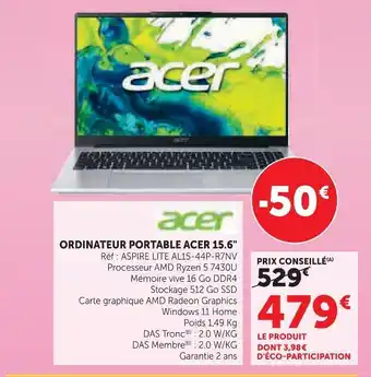 Actuellement en offre chez Hyper U : Acer ordinateur portable 15.6 ✅ Valable du 24-02 au 8-03.