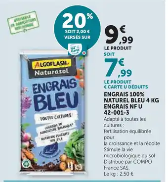 Actuellement en offre chez Hyper U : Algoflash engrais 100% naturel bleu ✅ Valable du 24-02 au 22-03.