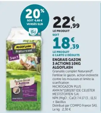 Actuellement en offre chez Hyper U : ALGOFLASH Engrais gazon 3 actions ✅ Valable du 17-02 au 15-03.