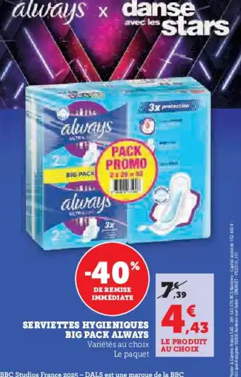 ALWAYS Serviettes hygieniques big pack : offres et promos Hyper U à découvrir