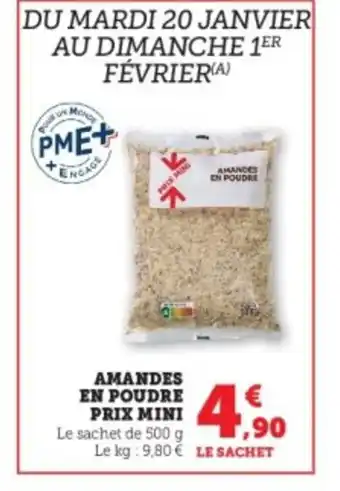 Actuellement en offre chez Hyper U : Amandes en poudre prix mini ✅ Valable du 20-01 au 1-02.