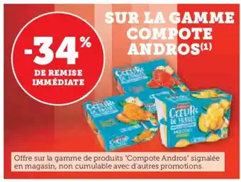 Actuellement en offre chez Hyper U : ANDROS Sur la gamme compote ✅ Valable du 6-01 au 18-01.