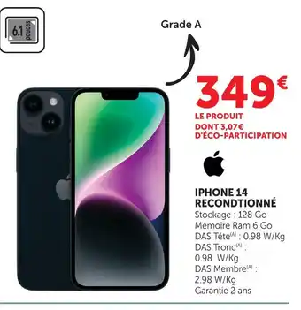 Actuellement en offre chez Hyper U : Apple iphone 14 reconditionné ✅ Valable du 28-04 au 10-05.