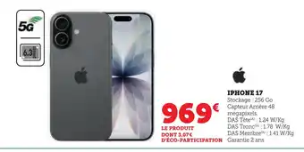 Actuellement, Apple iphone 17 est en promotion chez Hyper U. Toutes les informations utiles comme le prix, les conditions et la durée de validité sont affichées sur cette page. Consultez également les promotions similaires pour Apple iphone 17, afin de faire le meilleur choix. La promo Apple iphone 17 est valable du 20-01-2026 au 08-02-2026. Si elle est expirée, regardez les autres offres équivalentes. Vous pouvez aussi suivre cette catégorie de produit pour être alerté lorsqu’une nouvelle promotion Apple iphone 17 apparaît chez Hyper U.Questions fréquemment posées au sujet de Apple iphone 17