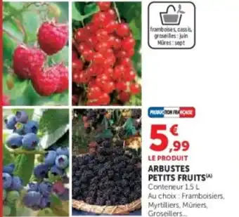 En plus de l'offre Arbustes petits fruits, Hyper U propose une large gamme de produits. Consultez le Catalogue Hyper U hebdomadaire pour découvrir les meilleures offres et promotions. En plus de Arbustes petits fruits, il y a aussi : Arbustes petits fruits, Petits fruits & Arbustes de haies fleuries.
