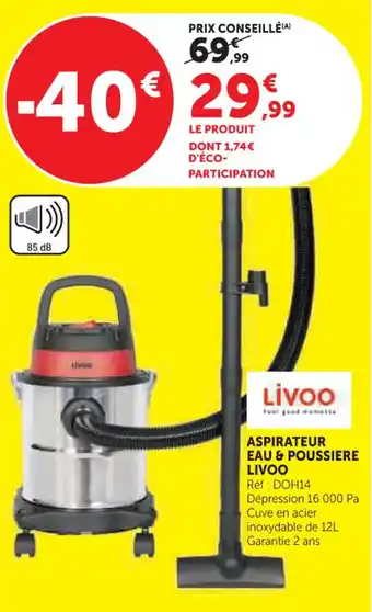 Actuellement en offre chez Hyper U : Aspirateur eau & poussiere livoo ✅ Valable du 24-02 au 8-03.