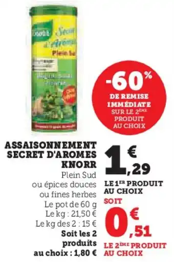 Actuellement en offre chez Hyper U : Assaisonnement secret d'aromes knorr DE REMISE IMMÉDIATE SUR LE 2 ✅ Valable du 10-02 au 22-02.