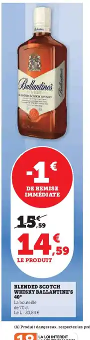 Actuellement en offre chez Hyper U : BALLANTINE'S Blended scotch whisky ✅ Valable du 13-01 au 25-01.