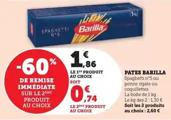 Actuellement en offre chez Hyper U : Barilla - pates ✅ Valable du 3-02 au 15-02.
