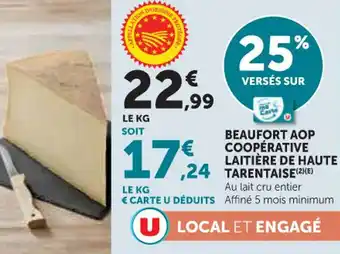 Actuellement en offre chez Hyper U : Beaufort aop coopérative laitière de haute tarentaise ✅ Valable du 17-02 au 1-03.