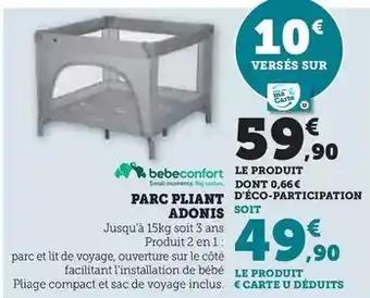 Actuellement en offre chez Hyper U : Bébé confort - parc pliant adonis ✅ Valable du 6-01 au 18-01.
