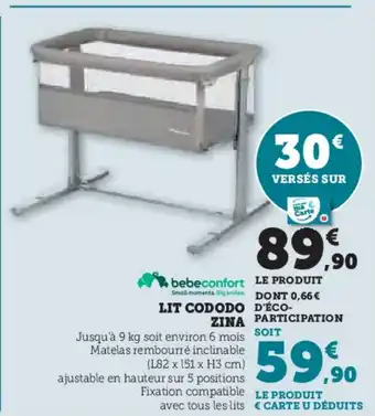 En plus de l'offre BEBECONFORT Lit cododo, Hyper U propose une large gamme de produits. Consultez le Catalogue Hyper U hebdomadaire pour découvrir les meilleures offres et promotions. En plus de BEBECONFORT Lit cododo, il y a aussi : Bébé confort - lit cododo zina, BEBE CONFORT Lit cododo zina & BEBECONFORT Lit parapluie sweet dream.
