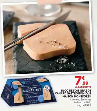 Actuellement en offre chez Hyper U : Bloc de foie gras de canard gastronomique maison montfort ✅ Valable du 24-02 au 8-03.