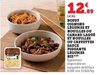 Boeuf oignons légumes et nouilles ou canard laqué et nouilles ou crevettes sauce piquante légumes riz offres et promotions en ligne chez Hyper U