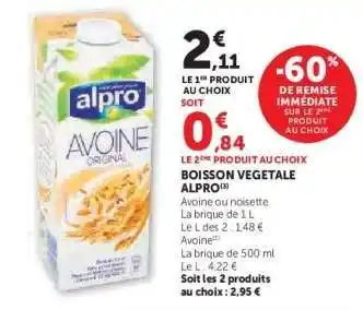 Actuellement en offre chez Hyper U : Boisson végétale ALPRO ✅ Valable du 24-03 au 6-04.