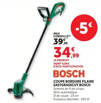 Le prix de l'offre Bosch coupe bordure filaire easygrasscut se trouve également en haut de la page, ainsi que la date à laquelle l'offre est disponible. Vous pouvez également vérifier les prix dans le Catalogue Hyper U actuel ou sur le site Internet de Hyper U. Les offres vous permettent d'acheter les produits Hyper U au prix le plus bas.