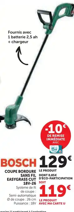 Offre Bosch coupe bordure sans fil easygrass cut 18v-26 chez Hyper U