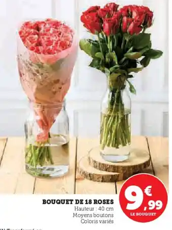 En plus de l'offre Bouquet de 18 roses, Hyper U propose une large gamme de produits. Consultez le Catalogue Hyper U hebdomadaire pour découvrir les meilleures offres et promotions. En plus de Bouquet de 18 roses, il y a aussi : Bouquet de 18 roses, Bouquet de 18 roses & Bouquet de 18 roses.