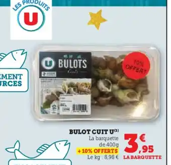 L'offre est disponible dans plusieurs magasins, vérifiez tous les produits pour obtenir le Bulot cuit u le moins cher. Si vous souhaitez savoir si l'article est en vente avec une plus grosse remise dans un autre magasin, consultez la catégorie 'Supermarché'. Ces offres pourraient aussi vous intéresser : U Bulot cuit pasteurise, Bulot cuit & Bulot cuit.