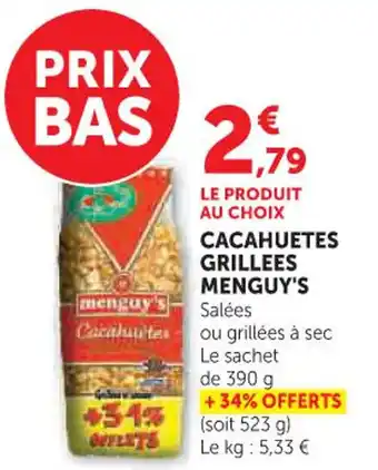 Actuellement en offre chez Hyper U : Cacahuetes grillees menguy's ✅ Valable du 17-02 au 1-03.
