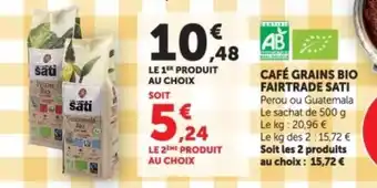 CAFÉ GRAINS BIO FAIRTRADE SATI : offres et promos Hyper U à découvrir