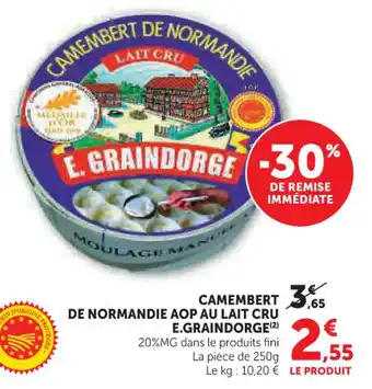 Actuellement en offre chez Hyper U : Camembert de normandie aop au lait cru e.graindorge ✅ Valable du 24-02 au 8-03.