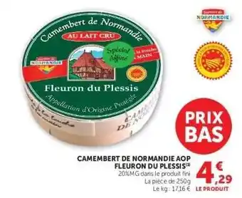 Actuellement en offre chez Hyper U : Camembert de Normandie AOP Fleuron du Plessis ✅ Valable du 5-05 au 10-05.