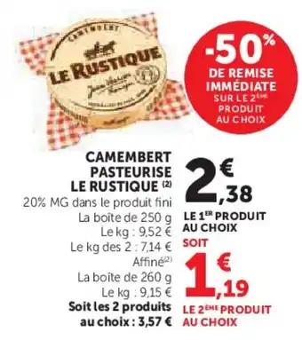 Actuellement en offre chez Hyper U : Camembert pasteurise le rustique ✅ Valable du 17-03 au 29-03.